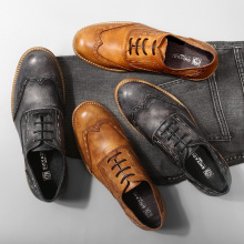 男士商务皮鞋休闲复古潮流手工雕花男鞋英伦真皮休闲鞋布洛克男鞋