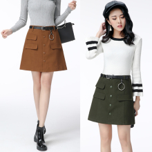 高腰短裙秋冬新款单排扣A字裙子显瘦包臀一步裙冬季打底半身裙女