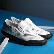 男鞋2017夏季日常休闲男士凉鞋真皮英伦透气套脚镂空皮鞋男冲孔鞋