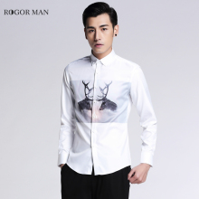 ROGOR MAN男士方领修身印花长袖衬衫 时尚简约衬衣潮男休闲打底衫