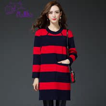 2016秋冬打底毛衣大码女装中长款连衣裙针织衫加厚保暖宽松毛衣裙