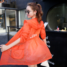 防晒衣女长袖2017春夏新款大码中长款显瘦韩连帽薄外套透明防晒服