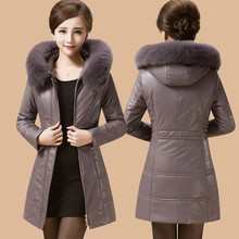 皮羽绒服女中长款海宁皮衣2016冬装新款中老年大码女装毛领皮外套