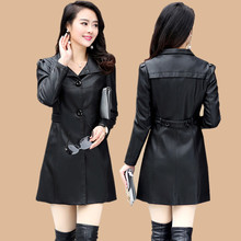 2017春秋新款女装海宁皮衣女妈妈装中长款大码修身皮风衣女皮外套