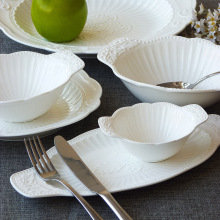 创意出口宫廷欧式浮雕陶瓷餐具洛可可餐菜盘鱼盘汤盘甜品双耳汤碗