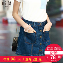 昕薇2016夏装百搭短裙女显瘦单排扣牛仔裙半身裙夏学院风a字裙子