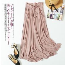 春夏韩版文艺范女式长裙超薄有垂感莫代尔高腰系带纯色A字半身裙