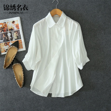 2016春夏季新款韩版时尚甜美娃娃领ol白衬衣泡泡袖宽松中袖衬衫女