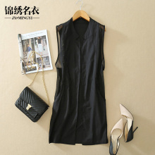 2017春夏新款韩版棉麻女装防晒长款背心蕾丝拼接薄款修身黑色马甲
