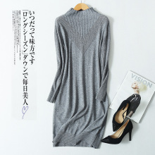 秋冬新款气质半高领镂空织花V字宽松羊毛针织裙及膝长袖连衣裙女