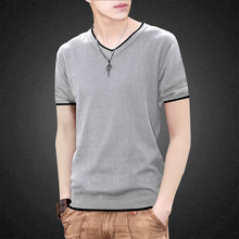 夏季男士短袖T恤v领上衣韩版潮学生卫衣服针织打底衫半袖2017新款