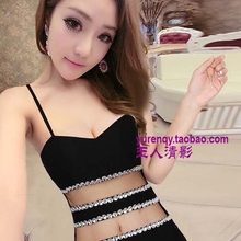 2016夏装新款女装夜店性感吊带包臀连衣裙低胸深v露腰短裙子夜场