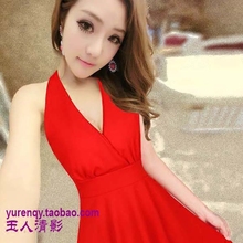 夜店女装冬2016性感潮深V低胸连衣裙挂脖裙镂空露背短裙子小礼服