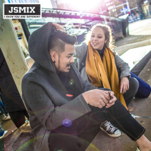 JSMIX大码男装男士加肥加大宽松胖子中长款太空棉连帽风衣外套春