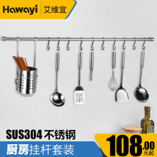 304不锈钢厨房挂杆活动挂钩排钩套装壁挂厨房挂件挂架厨具收纳架