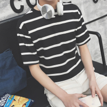 T恤男短袖夏季17宽松条纹t恤学生打底衫韩版休闲圆领小清新潮体恤