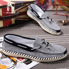 夏季透气亚麻鞋男士帆布男鞋韩版流苏休闲鞋潮一脚蹬懒人鞋布鞋男