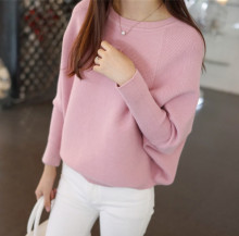 2016韩版秋冬新款女装低领纯色宽松大码针织衫女套头毛衣蝙蝠衫