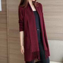 2016秋冬季新款韩版宽松大码中长款流苏开衫针织衫毛衣外套女装潮