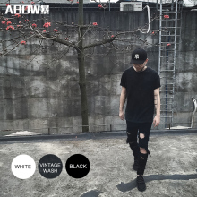 abow#kanye west#adny#素色简约白T恤纯棉打底衫汗衫短袖T恤剪裁