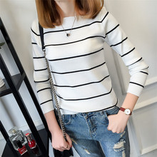 豪喜秋装毛衣针织衫女薄外套女装套头圆领短打底衫上衣条纹长袖