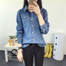 豪喜韩版2017秋冬款打底牛仔衬衫女式长袖宽松衬衣外套上衣