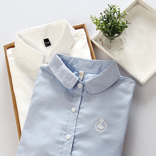 豪喜春秋季新款小清新天鹅刺绣百搭长袖衬衫女棉衬衫打底衬衫衬衣