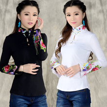 民族风女装2014秋装新款 艾蓓怡立领绣花t恤女长袖上衣刺绣打