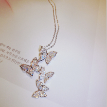 s925纯银韩版镀18K日韩版磨砂蝴蝶项链女款吊坠彩金锁骨链礼物