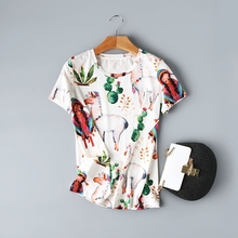 2017春季女装新品手绘羊驼姑娘 精梳棉圆领短袖印花T恤上衣女百搭