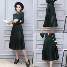 春季新款丝绒百褶裙半身裙冬大码金丝绒中长款裙子秋冬长裙a字裙