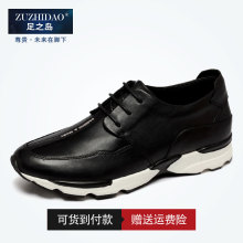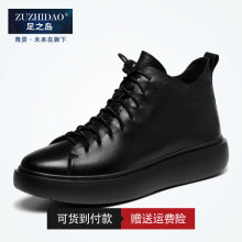 足之岛头层牛皮商务休闲高帮皮鞋男透气圆头系带厚底夏季增高男鞋