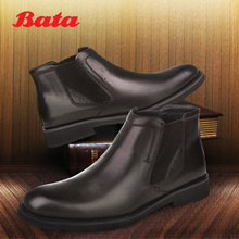 Bata/拔佳冬季专柜同款素面短筒靴平跟牛皮男靴A6D59DD5