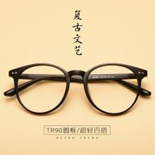 复古眼镜框女韩版圆形超大框黑学生配防辐射近视镜片平光镜一体潮