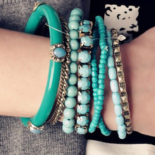 手镯 时尚 宽 外贸原单 波西米亚风格 民族风情 串珠 多层 蓝 紫