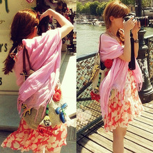 新款 波西米亚 辣椒款沙滩海边纯色度假遮阳流苏围巾纱巾披肩批纱