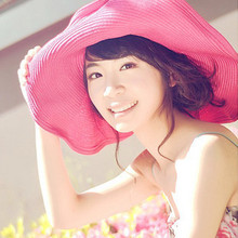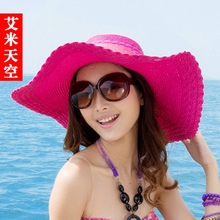 加厚 可折叠 送飘带 韩国大沿帽遮阳太阳帽子沙滩大檐帽 大草帽