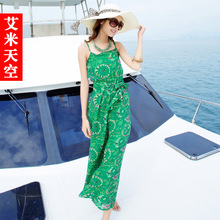 2015夏新 波西米亚连体长裤 雪纺高腰吊带时尚休闲宽松裤裙