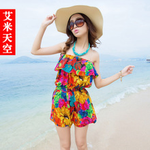波西米亚女时尚海边度假薄款高腰沙滩裤阔腿裤碎花短裤