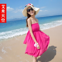 多穿抹胸纯色 短雪纺 波西米亚海边度假沙滩裙连衣裙