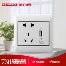 德力西USB墙壁开关插座 二三插带usb插座 五孔电源插座带USB面板