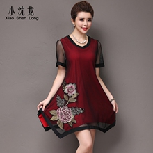 中老年妈妈装胖MM加大绣花连衣裙宽松显瘦大码中年母亲节衣服夏季