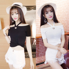 2017夏装新款挂脖露肩上衣+牛仔短裤套装女时尚夜店性感两件套潮