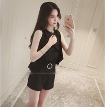 2017夏装新款韩版名媛气质套装女显瘦时尚雪纺两件套短裤女装潮