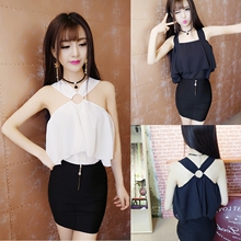 性感夜店女装2017春秋新款韩版夜场挂脖露背裹胸紧身包臀连衣裙夏