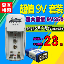 aellex9V充电电池套装6F22 9V电池充电器配2节万用表无线话筒电池