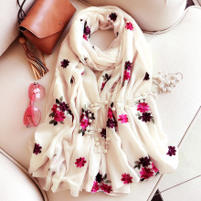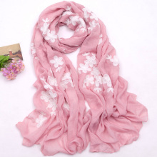 2016新款秋冬季保暖丝巾长款秋冬加大棉麻围巾刺绣绣花女士披肩