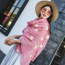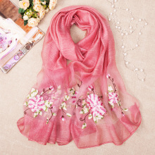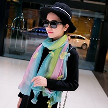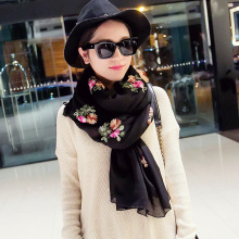 2016春秋韩版新款丝巾女长款四季雪纺绣花围巾冬季女士披肩田园潮