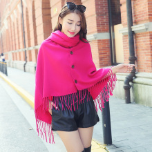 2016秋冬季加厚保暖韩版流苏纽扣可穿仿羊绒 百变围巾披肩两用