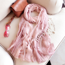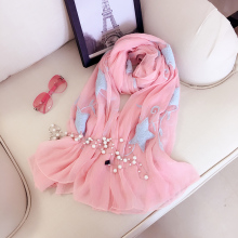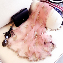圣雅诗蒂秋冬季女士雪纺丝巾女长款披肩绣花围巾女冬季韩版纱巾